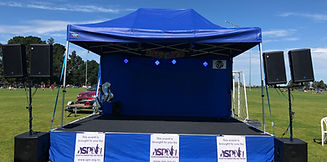 Portable stage suitable for indoor and outdoor events 4.8m x 3.6m with cover.